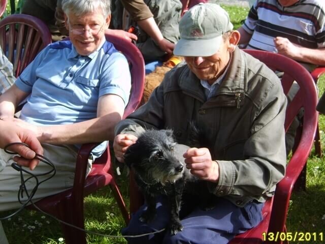 Mit Freude und Spannung erwarteten die Bewohner der Einrichtung am 13.05.2011 ihre zwei- und vierbeinigen Gäste, denn die Besuche der Hundefreunde in den letzten Jahren waren immer sehr interessant, unterhaltsam und lustig. Deshalb gab es auch eine herzliche Begrüßung, als Cleo, Zeus, Pepsi, Lucky, Yoster, Friedel und Lucy mit ihren Zweibeinern eintrafen. Auf der Wiese wurden die Geräte aufgebaut, die für die Vorstellung benötigt wurden.
