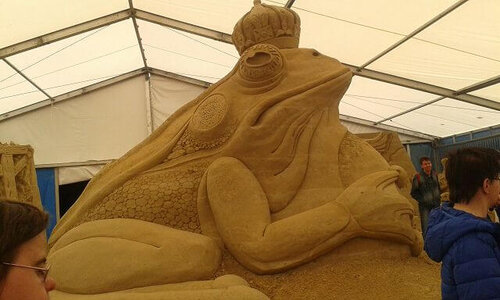 In den Zelten, wo die Sandskulpturen aufgebaut waren, kamen wir aus dem Staunen nicht heraus. Das Thema der Skulpturen waren „ Märchen aus aller Welt“. Die Künstler vergaßen keine Details auf alle Feinheiten der Figuren wurde geachtet, die Maserung der Federn Fingernägel alte poröse Steine u.v.m.