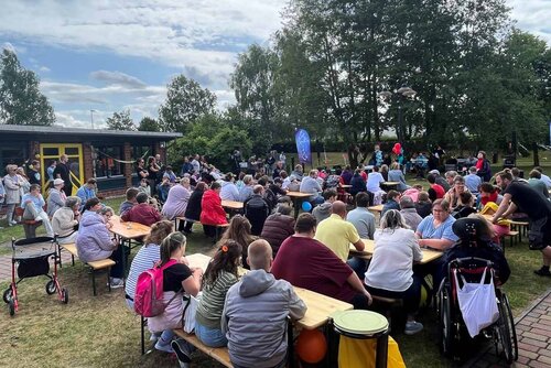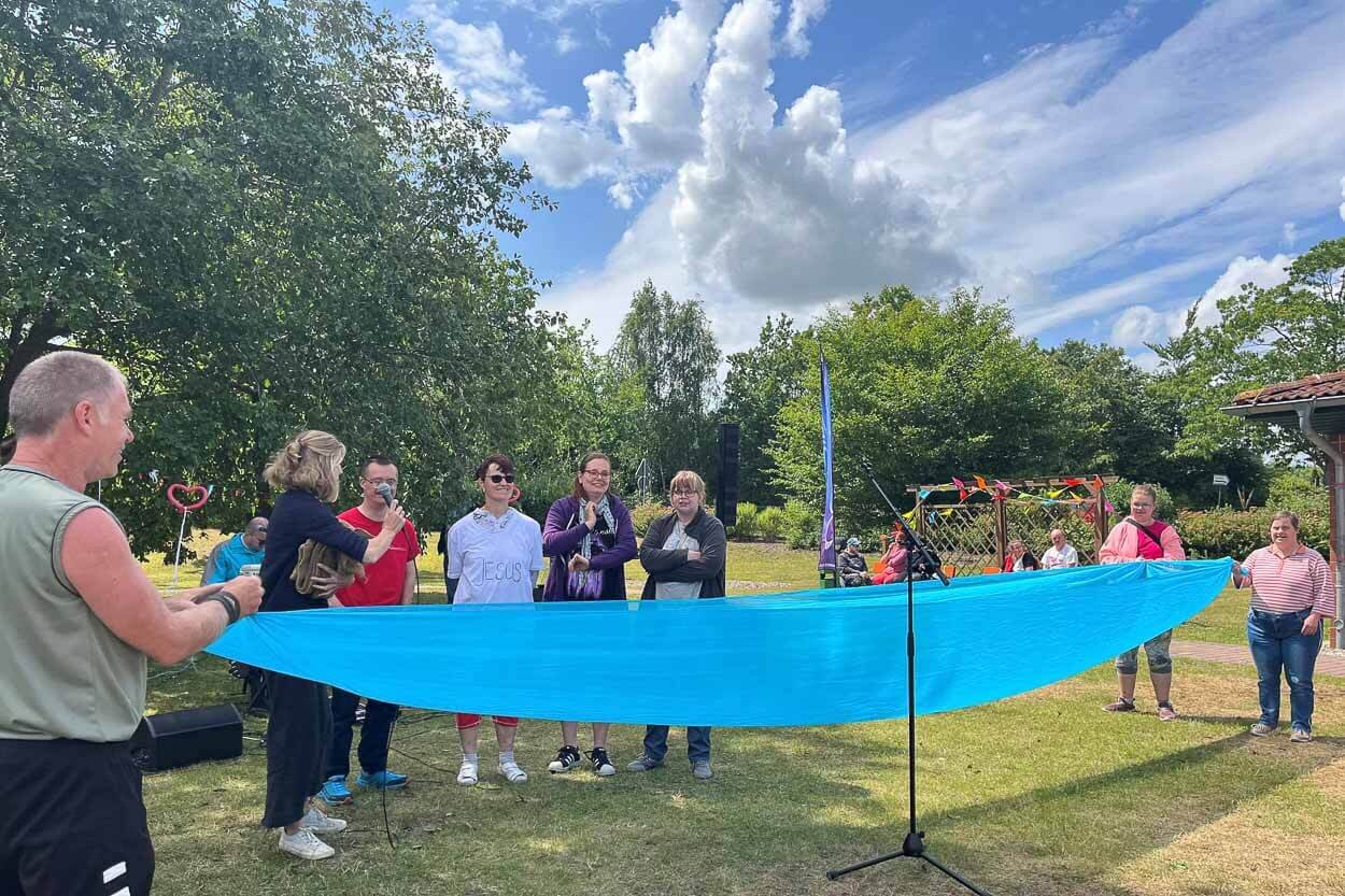 Hallo und herzlich willkommen hieß es zur Sommerandacht am Helmshäger Berg für Leistungsberechtigte und Fachkräfte der Greifenwerkstatt! Thema der Andacht war die Freundschaft – und gleich zu Beginn der Andacht gab es eine ganz besondere Frage für das anwesende Publikum.