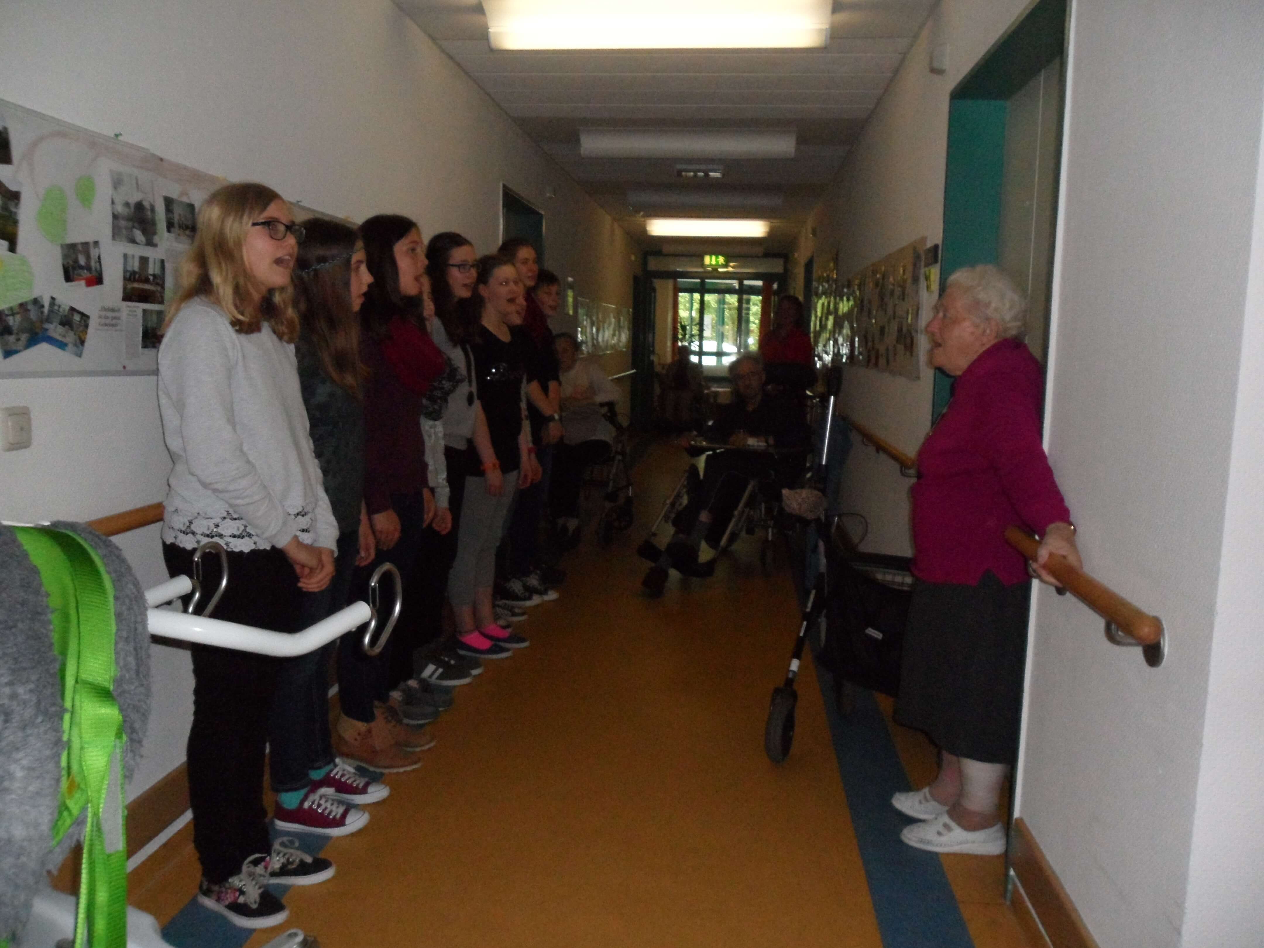 9 Schüler der 6. Klasse des Goethe- Gymnasiums in Demmin besuchten gemeinsam mit ihrer Lehrerin Fr. Dr. Werner unser Haus. Für einige Schüler war es nicht der 1. Besuch, denn sie hatten bereits Auftritte mit ihrer Tanzgruppe im Gertraudenstift. Während des Rundganges zeigten Bewohner ihnen ihre Zimmer und sie lernten Pflegehilfsmittel, die in der täglichen Arbeit eingesetzt werden, kennen. Besonders interessant fanden sie die Parkerbadewanne. Die Schulstunde verging wie im Flug. Die Schüler, die in der Musikklasse des Goethe- Gymnasiums lernen, verabschiedeten sich in jedem Wohnbereich mit einem kleinen Ständchen.