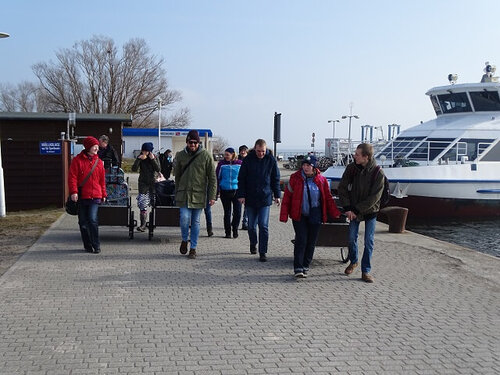 Freitag am 4. März ging es dann mit Bus, Bahn und Schiff auf die Insel. Das Gepäck wurde in den Handwagen verstaut und dann machten wir uns auf zum Ferienhaus. Den Einkauf für das Wochenende erledigten wir im Inselmarkt in Vitte. Anschließend begaben wir uns bei Sonnenschein auf einen Spaziergang über Kloster zum Leuchtturm.