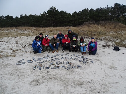 Am Abend wurde dann gemeinschaftlich gekocht, zusammen gegessen und sich angeregt unterhalten. Nach einem ausgiebigen Frühstück am Samstag ging es auf die 5 Kilometer lange Strecke nach Neuendorf. Auf dem Weg dorthin erkundeten wir die Dünenheide und spazierten ein Stück den Strand entlang. In Neuendorf wurde sich bei Kaffee, Kuchen oder Eis gestärkt. Zurück ging es dann auf direktem Weg, vorbei an Wiesen, auf denen man Kraniche beobachten konnte.