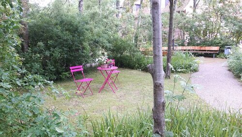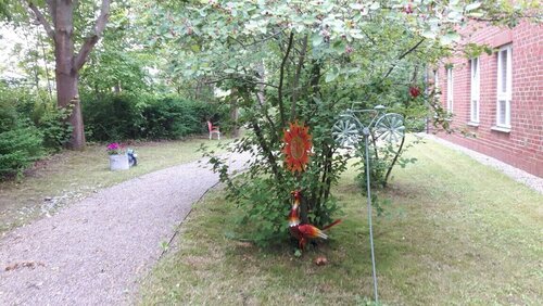 Die Gestaltung des Bewohnergartens am Gottfried-Janczikowsky-Haus nimmt weiter seinen Lauf. Diesen Wohlfühlgarten haben die Bewohnerinnen und Bewohner den Mitarbeitenden des Hauses K. Streblow und S. Weinert zu verdanken. Vor, zwischen und nach dem Dienst gestalten und pflegen sie diesen rund um den bereits seit vielen Jahren bestehenden Brunnen. Das Ziel unserer ehrenamtlichen Gärtner ist es v.a., den Gefühlswelten der demenziell erkrankten Menschen einen Raum zu schenken. Denn diese nehmen ihre Umwelt vor allem über die Gefühlsebene wahr. Um Ängsten oder Verwirrtheit entgegenzuwirken, wird planerisch bereits auf eine bewusste Farbwahl von Pflanzen und der Auswahl vertrauter Gegenstände, wie einem Vogelhäuschen, einer Milchkanne oder den Verlauf des Gehwegs geachtet. Eine mögliche Lauftendenz und Desorientiertheit unserer Spaziergänger muss hier Berücksichtigung finden, erläutert S. Weinert. Ein Hochbeet, eine Hollywoodschaukel und weitere Lichterspiele finden sich in der weiteren Planung der beiden wieder.