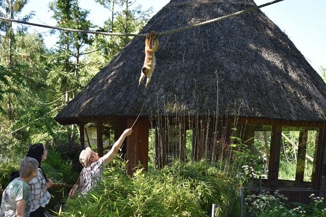 Dort angekommen wurden wir bereits, mit einer Führung mit Tierfütterung, von den Tierpflegerinnen in Empfang genommen. Entlang der bezaubernden Außenanlage führte uns der Weg zu den liebevoll und artgerechten Tiergehegen. Dank der informationsreichen Auskunft der Tierpflegerinnen tauchten wir schnell in die Tierwelt von Esel, Waschbär und Co. ein. Entzückt von den vielen Jungtieren, welche erst in diesem Jahr das Licht der Welt erblickten, war besonders das Streicheln einiger Tiere ein haptisches Erlebnis für uns.
