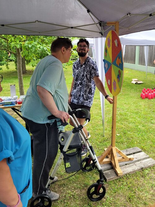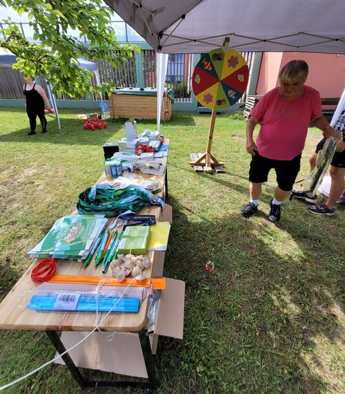 Am Sommerfestbaum konnten die Teilnehmenden selbst aktiv werden und ihren Handabdruck als Blatt verewigen. Tolle Preise konnten dank großzügiger Zuwendungen unserer Sponsoren am eigens gebauten Glücksrad verlost und gewonnen werden. Ein weiteres Highlight stellte OT Aktiv Greifswald zur Verfügung. Die Teilnehmer*innen konnten mit verschiedenen Rollstühlen über das Gelände fahren.