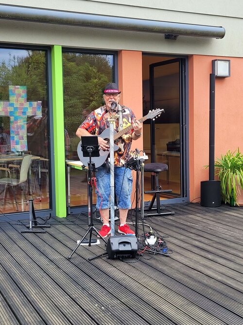 Umrahmt wurde das Sommerfest vom Livemusiker Sigmar König, der sehr unterhaltsam mit seiner Musik von Schlager bis Country für ausgelassene Stimmung sorgte. Insgesamt war es ein gelungenes Fest bei schönstem Sommerwetter und ausgelassener Stimmung!