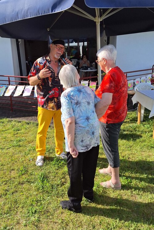 Im Anschluss übernahm der „Schlagerkönig“ das Mikrofon und führte mit Charme und bekannten Melodien durch den musikalischen Nachmittag. Ob „Rote Lippen soll man küssen“ oder „Griechischer Wein“ – es wurde mitgesungen, geschunkelt und gelacht. Die Musik weckte Erinnerungen und brachte Jung und Alt zusammen. Einige Bewohnerinnen kamen richtig ins Schwärmen….