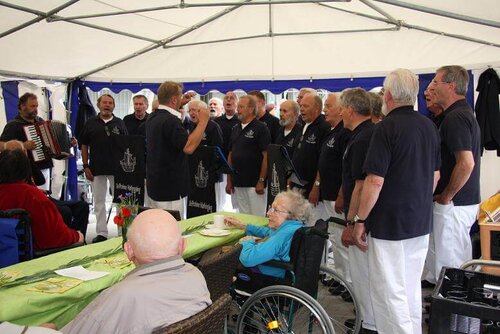 Der Shantychor stimmte Oldis aus "Klock 8, achtern Strom" an und die Party konnte seinen Lauf nehmen. Mitgesungen und mitgeschaukelt, nebenbei literweise Erdbeerbowle getrunken, war die Stimmung phantastisch.