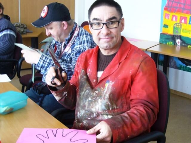 „Was hat euch denn am besten gefallen?“ – „Alles!“, lautete die Antwort der TeilnehmerInnen des Sozialtrainings „Selbst- und Fremdwahrnehmung“. Der in drei Einheiten aufgeteilte Kurs fand im Januar und Februar 2012 statt. 9 MitarbeiterInnen der Greifenwerkstatt Am Helmshäger Berg verbrachten gemeinsame Stunden, um sich selbst und die Kollegen und Kolleginnen besser wahrnehmen und einschätzen zu können. Dabei war es wichtig, Gruppenregeln zu besprechen und z. B. herauszufinden, was der jeweilige Nachbar bzw. die Nachbarin mag oder nicht mag. Oft kommt es in solchen Situationen auch auf die Gesichtsausdrücke und die Körpersprache (Mimik und Gestik) an, mit denen wir kommunizieren und so den anderen unsere Stimmung mitteilen. Mimiken, die z. B. Freude, Staunen, Trauer, Wut und Langeweile ausdrücken und die dazugehörige Körpersprache haben wir kennengelernt. Ein weiterer Teil des Kurses war unter anderem Entspannungsmusik zu hören und dabei in der Phantasie durch ferne Länder zu reisen, um für den nächsten Seminarabschnitt wieder aufnahmefähig und konzentriert zu sein. Im Laufe des Seminars haben die TeilnehmerInnen gemeinsam ein großes Plakat gestaltet, auf dem alle Arbeiten und Ergebnisse festgehalten wurden. Der selbstentworfene Schriftzug „Selbst- und Fremdwahrnehmung“ ziert das Plakat über den gegenseitig gemalten Bildern, die zeigen, was wir mögen und nicht mögen. Das gesteigerte konzentrierte Arbeiten, das begeisterte Mitmachen und die Auswertungsrunden zeigten, dass die TeilnehmerInnen dem Kurs offen und engagiert gegenüber standen und jeder etwas über sich und vom anderen lernen konnte. Am Ende der letzten Kurseinheit bekam jede Person eine Teilnahmebestätigung überreicht, die stolz entgegengenommen wurde.
