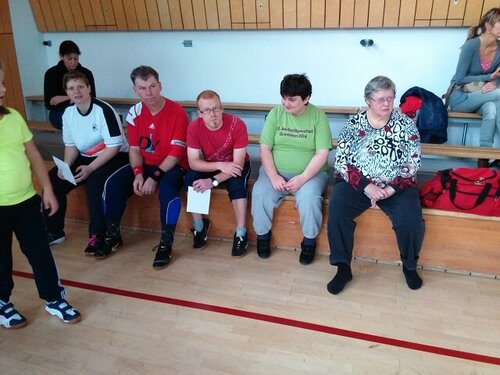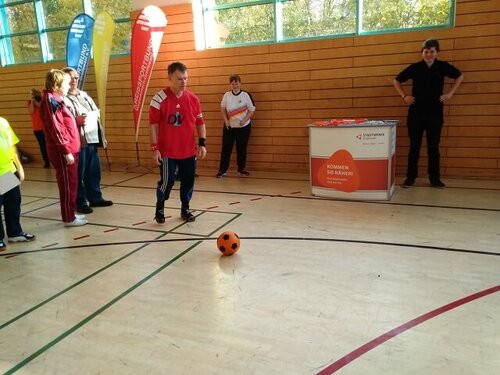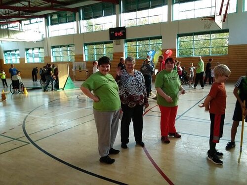Eine besondere Herausforderung war für unsere Teilnehmenden der Rollstuhlparcours. So stellte sich das öffnen einer Tür im Rollstuhl sitzend, als ziemlich anstrengende Aufgabe heraus, zumal sich die Tür auf einer kleinen Anhöhe befand. Alle Teilnehmer haben mit viel Freude und großem körperlichen Einsatz an allen Stationen ihre Punkte erhalten.Zum Ende beschwingten sich alle Sportfreunde noch mit einer Polonaise durch die ganze Halle.