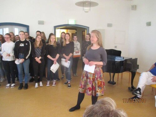 Der jungen engagierten Musiklehrerin Carolin Beiche gelang es, in ihrer äußerst munter inspirierenden Art mit sehr eingängigen, teilweise bekannten Melodien den jugendlichen Chor in einen harmonischen Klangkörper zu verwandeln.