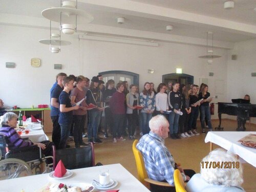 Ein besonderer Höhepunkt dieser Tage im Nikolaiheim in Gützkow war der traditionell stattfindende Auftritt des Chores des Schlossgymnasiums Gützkow im großen Saal des Hauses.