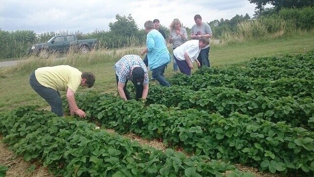 Auf unseren Unternehmungen sind wir oft an einem Erdbeerfeld vorbei gekommen, wo stets viele Leute Erdbeeren für den Eigenbedarf pflückten. Unser Appetit auf Erdbeeren wurde geweckt und so haben wir eine Mittagsmahlzeit ins Feld verlegt. Nach der Devise "eine in den Korb und viele in den Mund", haben wir uns mal so richtig satt gegessen. Aber auch an unsere daheim gebliebenen Mitbewohner wurde gedacht, die sich bestimmt über zwei große Körbe Erdbeeren freuen werden.
