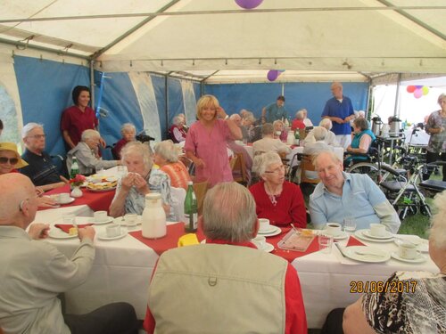 Das Wetter spielte an diesem Tag gut mit und so konnte dann nach dem Kaffeetrinken die Sängerin „Heidi“ mit ihrem bunten Programm aus Schlagern, Pop und Volksmusik die Herzen der Zuschauer gewinnen und so manchen zum Mitschunkeln und auch Mittanzen bewegen.