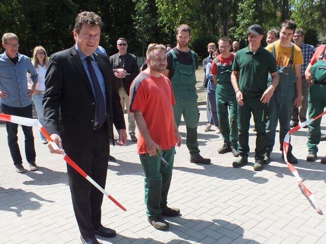 Herzlichen Dank an die Planer und ausführende Firma. Nach vielen Monaten der Umgestaltung auf dem Gelände des Vereins wurde am 28.06.2017 eine Baumaßnahme abgeschlossen, die neben der Verbesserung der Lebensqualität am Ort, auch ein Bekenntnis des Vereins zum Standort Züssow darstellt. Was vor Monaten noch eine Huckelpiste mit alten Gebäuden war, zeigt sich heute als ein heller lichter Platz, mit bequemen Wegen zum Rautenberghaus. Neue Parkplätze für Kolleginnen, Kollegen und Gäste, grünende und blühende Rabatten, der aufkeimende Rasen auf den großzügigen Freiflächen, der neue Wirtschaftshof zum ZSC – ein gelungenes Ensemble.