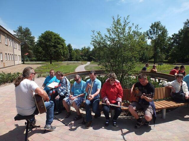 Mit musikalischer Untermalung von Seeside und Kaffee und Kuchen feierten die Gäste aus allen Geschäftsbereichen des PDV, Mitarbeiter der Greifenwerkstatt und Bewohner der umliegenden Häuser gemeinsam ihr neues Kleinod.