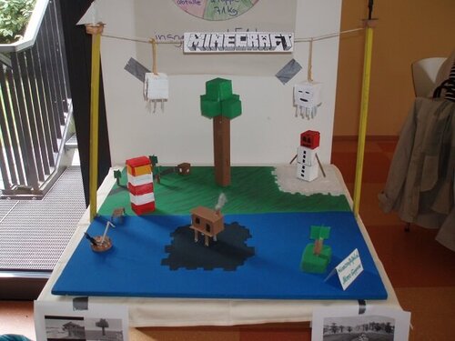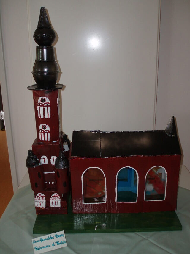 Es gab alles zu sehen: von Robotern, Raketen, Minion- und Spongebobfiguren bis hin zu einer Playstation-Spielestation aus Milch- und Eierpackungen. Hingucker waren eine tolle große Rennbahn mit Tunnel, Tribünen und Gewinnertreppchen; ein gefährliches Krokodil, bereit ein ganzes Zebra zu verschlingen; eine Miniaturversion vom Greifswalder Dom sowie eine tolle Minecraft-Welt mit verschiedenen Landschaften, Gebäuden und Pflanzen aus dem bekannten Computerspiel.