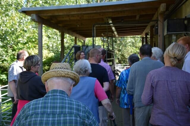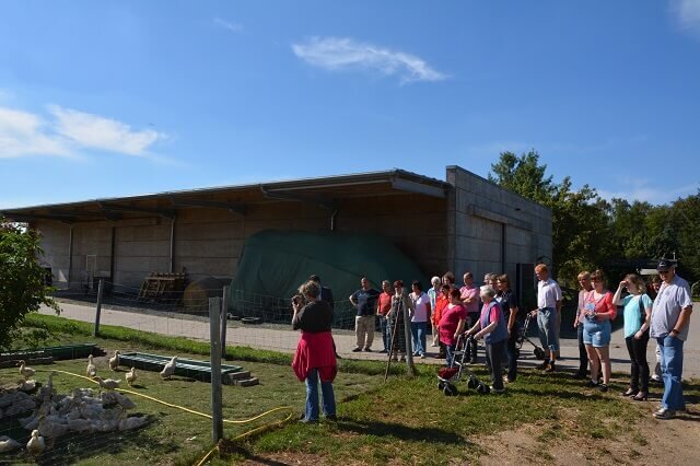 Das Treffen begann jedoch zunächst mit einigen kurzen Berichten zum aktuellen Geschehen im Pommerschen Diakonieverein - von den Veranstaltungen anlässlich des 25-jährigen Vereinsjubiläums bis hin zu den verschiedenen Bauaktivitäten. Außerdem stellte in diesem Jahr der BÜRGERHAFEN seine Tätigkeiten bzw. die ehrenamtliche Projektarbeit seiner Engagierten vor. Beim anschließenden Kaffeetrinken gab es dann die Gelegenheit zum Austausch, bevor es zur Besichtigung auf den Bauernhof ging. Dort konnten nicht nur die Ziegen, Hühner und Enten bestaunt werden, sondern auch die Melkanlage oder der Hofladen.