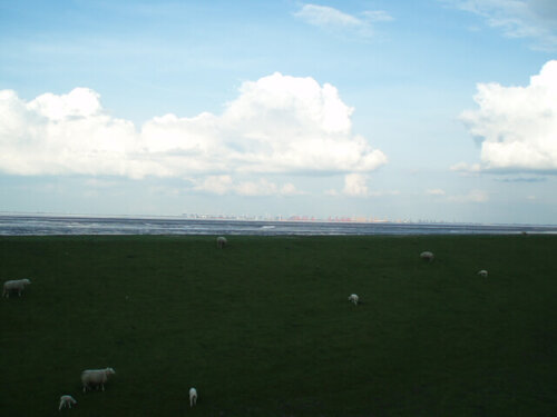Rechtzeitig zum gemütlichen Abendessen dort angekommen und begrüßt von den Nachbarschafen, machten wir uns auch schon auf den Weg, die Ortschaft zu erkunden. Von der Nordsee war jedoch keine Spur. Es war Ebbe. Kein Problem! Wir schauen morgen noch einmal.