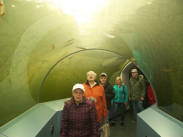 Ein ganz besonderes Highlight war der Besuch des Wild- Parks in Güstrow, welcher am vorletzten Tag stattfand. Bei herrlichem Sonnenschein bestaunten wir die Artenvielfalt der nordeuropäischen Vegetation. Vorbei an der spektakulär angelegten See- und Flusslandschaft, dem Moorgebiet, dem Freiwildgehege und der Wiesenlandschaft, bahnten wir uns den Weg zum realistisch angelegten Territorium der Raubtiere. Wie Naturforscher auf der Expedition, erkundeten wir den Lebensraum der Wölfe, Luchse und Wildkatzen, bis wir das Gehege der Braunbären erreichten. Dort wurden wir von einer Tierpflegerin sehr aufschlussreich über die Lebensgewohnheiten der Braunbären aufgeklärt.