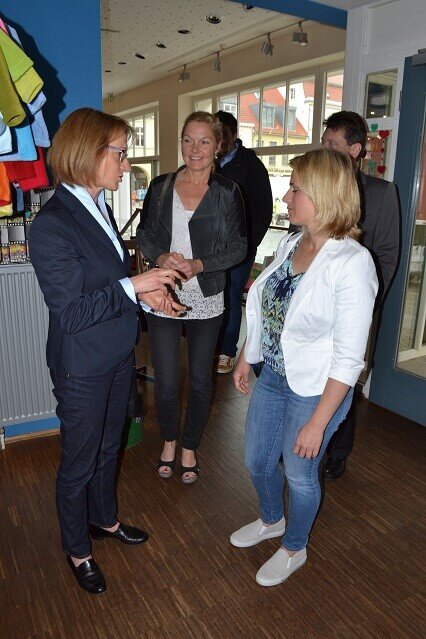 Am 15. Mai begrüßte der Pommersche Diakonieverein die Behindertenbeauftragte der Bundesregierung, Verena Bentele, und die Bundestagsabgeordnete Sonja Steffen im Café und Restaurant Lichtblick. Pastor Michael Bartels und die Bereichsgeschäftsführerin des Geschäftsbereichs arbeiten, Birgit Peters, führten die Gäste durch das Haus und erklärten den Inklusionsansatz, den der Pommersche Diakonieverein mit dem Werkstattbereich des Lichtblicks und der Näherei verfolgt.