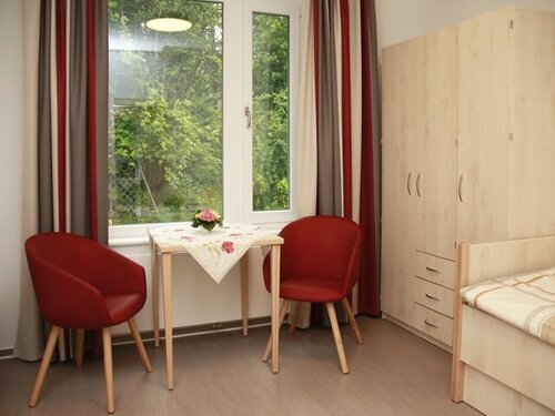 Hier werden ausschließlich Einzelzimmer, einige rollstuhlgerecht, angeboten. Das Gebäude ist vollständig barrierefrei und mit einem Personenaufzug versehen.