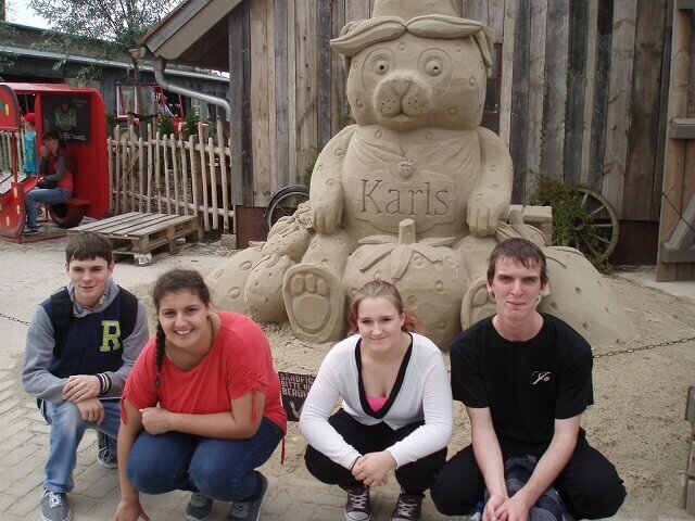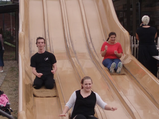 Neuer Tag, gleiche Zeit! Auf ging es nach Koserow zu Karls Erdbeerhof auf Usedom! Dort erfuhren wir viel Wissenswertes über die ,,Erdbeere‘‘, die wir ja alle sehr gerne essen. Hier konnten wir eine Menge lernen, vieles ausprobieren und natürlich auch Spaß haben. Gleichzeitig konnten unsere Betreuten ihre Sozialkompetenz festigen und sich mit anderen Gleichaltrigen austauschen. Das Highlight war ganz klar die Riesenrutsche, bei der Balance eine große Rolle spielte.