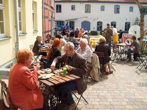 Am 6. Juni war deshalb zu einem bunten Treiben auf dem Schneiderhof, der Terrasse der Greifenwerkstatt Lichtblick, eingeladen. Wenn auch das Wetter an diesem Tag etwas kühl und windig daherkam, erfreuten sich alle Gäste an den speziellen Angeboten. Die Bastel-, Mal- und Knobeltafel für kleine und große Kinder war durch den Begleitenden Dienst, dem Büroservice und der Näherei liebevoll vorbereitet. Der Greifswalder Verein „Pfotenpartner e. V.“ zeigte mit drei Hunden kleine Kunststücke. Wer wollte, durfte auch selber mal mit den Hunden die aufgebaute Trainingsstrecke passieren. Wertvolle Tipps der Hundeprofis zum Umgang mit Hunden gab es gratis dazu.