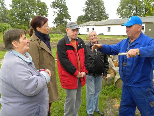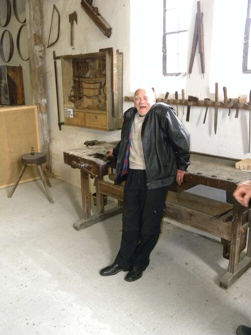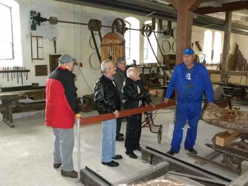 Nicht weniger interessant war die alte Stellmacherei, in der uns die Arbeitsweise des Sägewerkes erläutert wurde. Auch die Werkzeuge und die Technik für den Räderbau konnten dort bestaunt werden. Viele unserer Bewohner konnten sich an ihre Kinder- und Jugendzeit erinnern, wussten auch allerhand über die landwirtschaftlichen Geräte und Maschinen zu berichten, mit denen sie einst gearbeitet haben. So konnten sie zum Beispiel von der Arbeit am Dreschwagen, dem Rübenroder oder Kartoffeldämpfer und von ihren damaligen Erlebnissen erzählen.