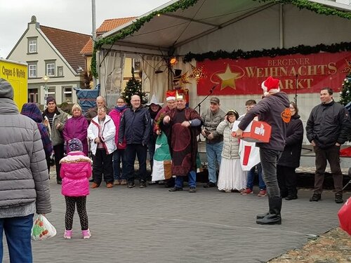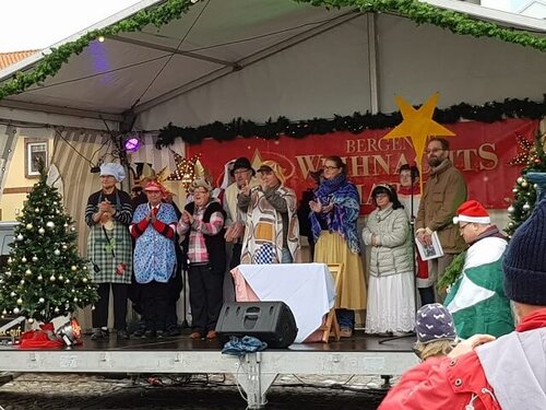 Erstmals hatte die Laienspielgruppe die Möglichkeit am 08.12.2018 ihr Weihnachtsstück auf der Bühne am Weihnachtsmarkt in Bergen aufzuführen.