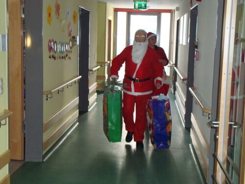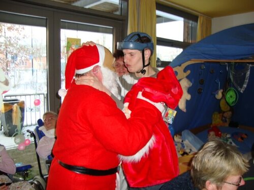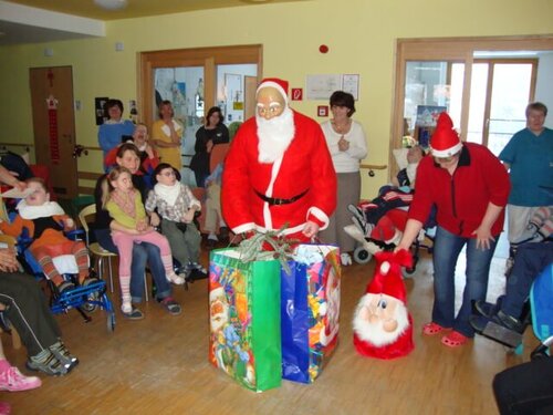 Alle sind ganz aufgeregt. Die Mitarbeiter haben das ganze Haus, die Räume und die Tische festlich geschmückt. Es riecht im Haus so herrlich und die elektrischen Kerzen brennen. Es werden Weihnachtslieder gesungen, Eltern sind gekommen und endlich kommt auch der Weihnachtsmann mit seinem Gehilfen, denn die Säcke sind gar schwer und der Weg durch den Schnee hat schon viel Kraft gekostet.