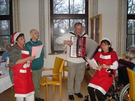 Außerdem war unser ehrenamtlicher Mitarbeiter, Herr Dieter Schimmelpfennig, dabei und unterstützte unseren Gesang am Klavier und am Akkordeon.