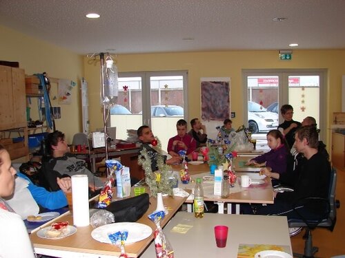 Am 14.12.2010 fand die Weihnachtsfeier der Fördergruppe der Greifenwerkstatt statt. Der besinnliche Tag begann mit einem ausgiebigen Frühstück in gemütlicher Runde. Bei Brötchen, Tee und Naschereien wurde geschlemmt und weihnachtliche Musik gehört. Im Anschluss daran konnten die Teilnehmer Plätzchen backen oder kreativ werden. Aus dem Bereich der Keramik wurden Weihnachtsteller- Rohlinge bestellt, die mit verschiedenen Techniken zu wunderschönen Geschenken verziert wurden. Besonders bei den Eltern, erfreuten sich die liebevoll gefertigten Teller großer Beliebtheit. Ausgeklungen ist der ereignisreiche Tag bei Plätzchen und Kakao im Schein der Kerzen des Weihnachtsbaumes.