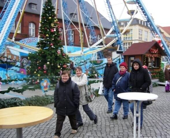 Am 8. Dezember haben wir, „die Verpackung„ aus der Greifenwerkstatt unsere Weihnachtsfeier auf dem Weihnachtsmarkt gestaltet. Schon seit Tagen war die Aufregung der Mitarbeiter sehr groß. Sie waren gespannt darauf, was es dort zu entdecken gibt. Schon die gemeinsame Busfahrt war ein Erlebnis. Alle Mitarbeiter waren an diesem Tag besonders schnell mit dem Mittagessen fertig.