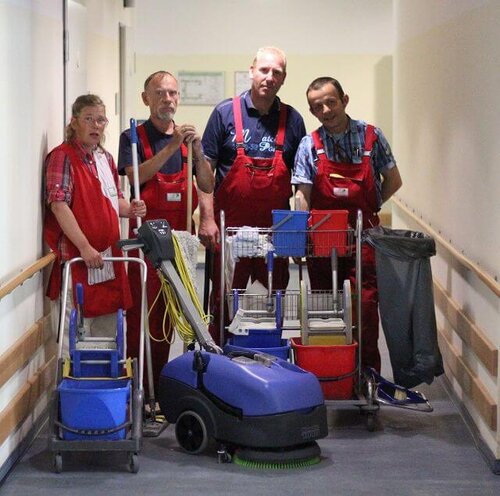 Die Reinigungsspezialisten der Hauswirtschaft Feldstraße sind jeden Morgen ab 6 Uhr in den Häusern unterwegs. „Bewaffnet“ mit Reinigungswagen, Wischmopp und Co. gilt es die Spuren des Vortages zu beseitigen.