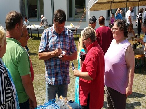 Gulaschsuppe und Schmalzschnitten waren eine deftige Stärkung und Obst, alkoholfreie Cocktails und andere Getränke halfen dabei, die sehr hochsommerlichen Temperaturen auszuhalten. Es war auch ausreichend Zeit und Gelegenheit zu Gesprächen mit Betreuern, Angehörigen und Kooperationspartnern.