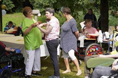 Hast du die Musik gefühlt? Die fröhlich aufgeregte Stimmung, die draußen im Garten am Haus an der Trebel an diesem Sommertag sich wie ein flatterndes Band im Wind durch die Bewohner*innen, Mitarbeitende und Gäste zog? Es war Sommerfest. Ein Fest, dass viele der Bewohner*innen aufgrund ihrer Beeinträchtigungen in erster Linie über die Musik wahrnahmen. Die Mitarbeitenden unterstützten beim (Rollstuhl)Tanzen und Schunkeln. Begleiteten und motivierten bei den Spielstationen, wie Dosenwerfen oder Kegeln und berieten bei der Auswahl von Glitzertattoo-Motiven. Highlight waren jedoch die Rikscha-Fahrten. Schon ein wenig aufregend, so mit Helm in das Gefährt einzusteigen, dass sich plötzlich auch noch in Bewegung setzt und Mobilität neu definiert. Die Freude hierüber war den Bewohner*innen anzumerken. Jeder*m auf die ganz eigene Art und Möglichkeit sich mitzuteilen - durch Gestik, Mimik und Laute.
