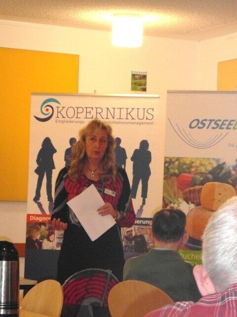 Auch in der Ostseelandwerkstatt ging es um das Thema „Leben und Wohnen für Menschen mit Assistenzbedarf“. Ute Hirt war dafür genau die richtige Referentin, denn als Regionalleiterin des Wohnbereiches in Züssow konnte sie beste Einblicke darüber geben, was der Begriff Assistenz alles beinhaltet, welche Wohnformen es zu unterscheiden gilt, wie viele Plätze vor Ort für unterschiedliche Personenkreise existieren, aber auch dazu, wie sich der Wohnbereich derzeit mit dem Bau einer neuen, rollstuhlgeeigneten Wohnstätte verändert und wie sich eventuell zukünftig neue Möglichkeiten im ambulanten Wohnen ergeben könnten. Da „Wohnen“ und „Freizeit“ natürlich unmittelbar mit einander verwoben sind, stellte Frau Hirt ebenso heraus, welche Angebote diesbezüglich stattfinden. Zudem wurde auch die Verhinderungspflege inhaltlich aufgegriffen sowie erläutert, wo/welche Anträge zu all den besprochenen Dingen zu stellen sind.