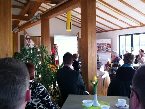 Der Pommersche Diakonieverein bietet Menschen mit Unterstützungsbedarf umfassende individuelle Assistenzleistungen, damit sie ihre Lebens- und Alltagsstrukturen im jeweiligen sozialen Umfeld möglichst eigenständig realisieren können. Neben Wohngemeinschaften für Menschen mit unterschiedlichstem Assistenzbedarf gibt es ebenfalls Leistungen im Bereich der ambulanten Einzelfallbetreuung sowie der Tages- und Begegnungsstätten. Die pädagogische Fachberaterin der Greifswalder Wohnstätten, Frau Bondeur, stellte im Rahmen des jährlichen Werkstatttreffs die Vielfalt der Angebote vor, gab Einblicke in die Themen Freizeitgestaltung, erklärte das „Trainingswohnen“, beantwortete Fragen zur Antragstellung und zu Zugangsvoraussetzungen. Im Anschluss stand sie sowohl im Plenum als auch danach im direkten persönlichen Kontakt für zahlreiche Fragen zur Verfügung.