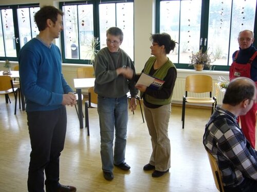 Eine große Kaffeetafel, die über 30 Personen Platz bot und an denen die Montage 2 und 4 der Greifenwerkstatt Platz nahm, bildete den feierlichen Rahmen für den Wechsel in den Arbeitsbereich von Frau Kopmann und Herr Möller. Am 04.12.2009 erhielten beide Teilnehmer ihre Zertifikate und die Urkunde für den erfolgreichen Abschluss der beruflichen Bildung in der Greifenwerkstatt. Aus den Händen der Bereichsleiterin der Industriebereiche Frau Hahn wurde ihnen im Anschluss der Werkstattvertrag überreicht, auf dessen Grundlage Frau Kopmann und Herr Möller zukünftig im Arbeitsbereich der Montage tätig sein werden.