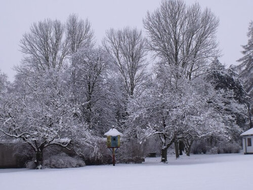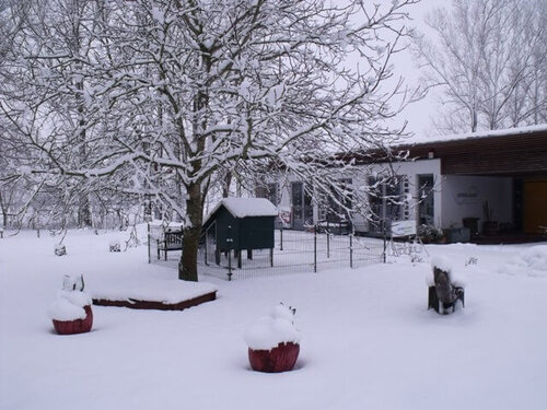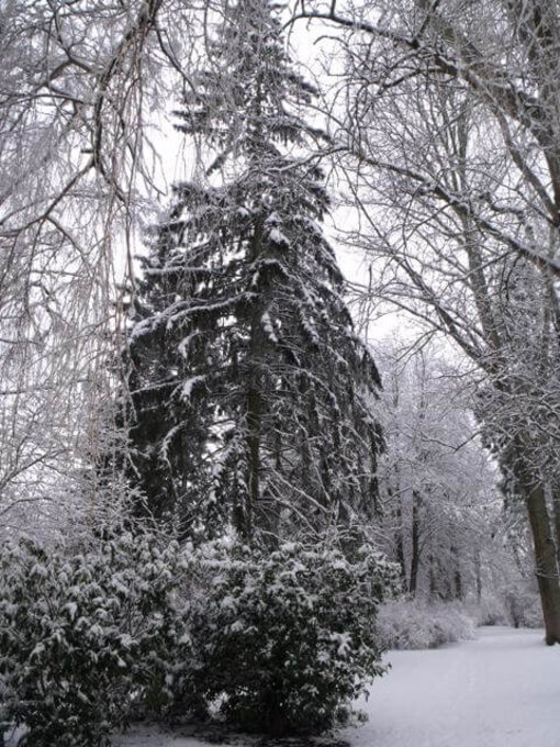 Der Park auf dem Gelände des Pommerschen Diakonievereins in malerisches Weiß gehüllt, lädt zu einem Spaziergang ein. Zum Kaffee trinken anschließend im BIOTagungshotel Wichernhaus einkehren.