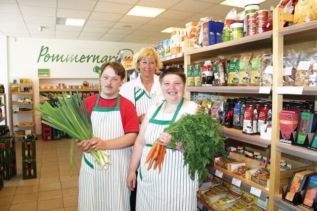 Das Besondere dieses Bio-Marktes ist es, dass hier Menschen mit und ohne Behinderungen gemeinsam arbeiten. So schafft Pommerngrün die Vorraussetzung zur beruflichen und sozialen Integration. Durch das Engagement aller Mitarbeiter entwickelte sich Pommerngrün in den beiden Jahren zur festen Größe und zum Bezugspunkt aller ernährungsbewussten Greifswalder.