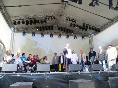 Eine Großbildleinwand auf dem Rathausplatz bot den vielen Besuchern die Möglichkeit, den Gottesdienst und auch das sich anschließende Showprogramm im Freien gemeinsam mit vielen Menschen zu erleben. Das Publikum tanzte und jubelte uns von Zugabe zu Zugabe!