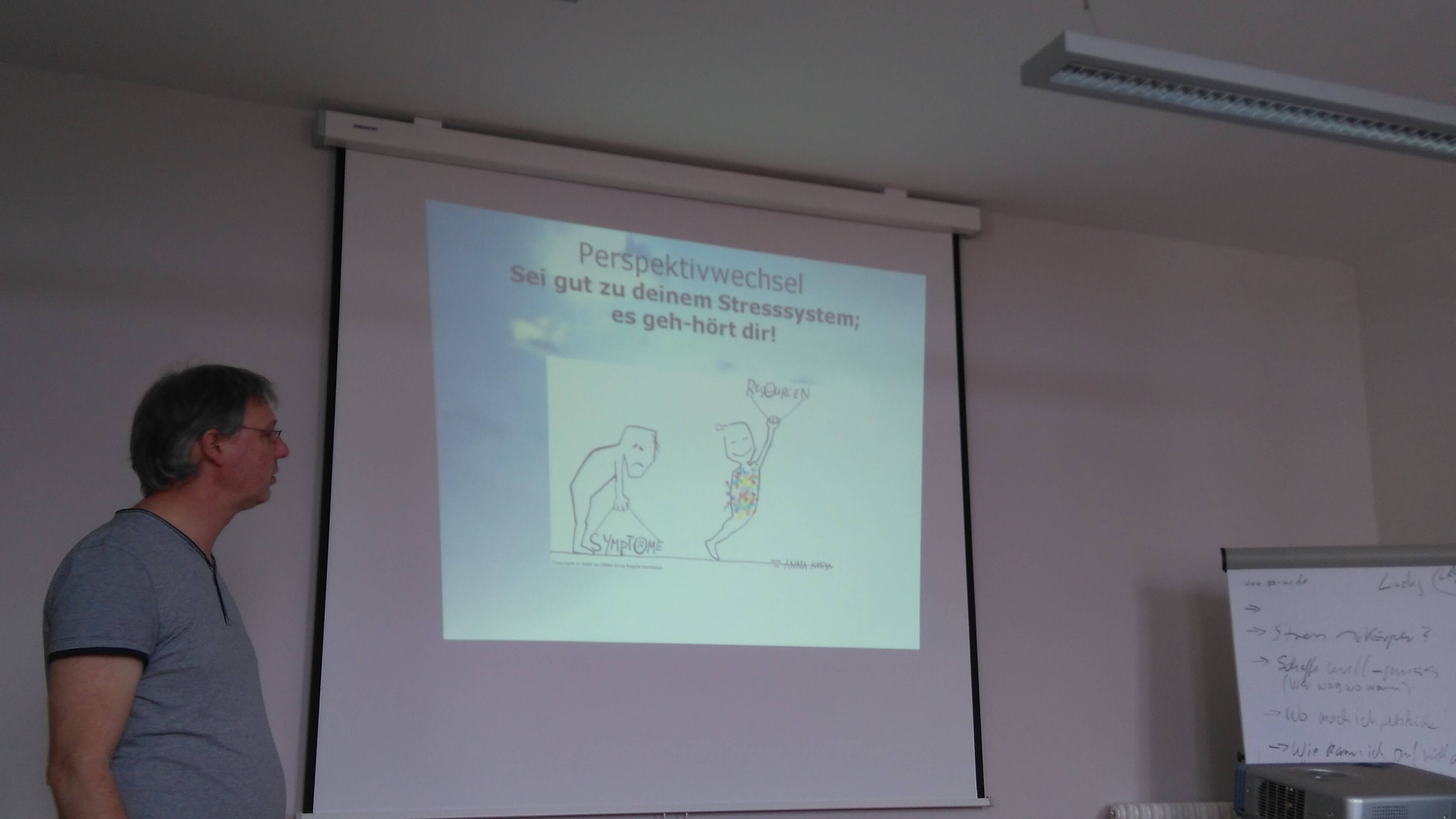 Holger Lindig vom Institut für systemische Arbeit mit Sitz in Schwerin (ISA-MV) referierte darüber, was Stress eigentlich bedeutet und wann er nützlich oder hinderlich ist. Dabei gewannen die Teilnehmer viele neue Erkenntnisse und erlebten den einen oder anderen AHA-Effekt. In Gruppenübungen setzen sich die Teilnehmer mit spezifischen Stressoren und deren Reaktionen darauf auseinander und suchten gemeinsam nach Lösungsmöglichkeiten für das zukünftige Verhalten im Berufsalltag. Das Seminar wurde als sehr hilfreich gewertet und der Erfahrungsaustausch wie immer als bereichernd erlebt.