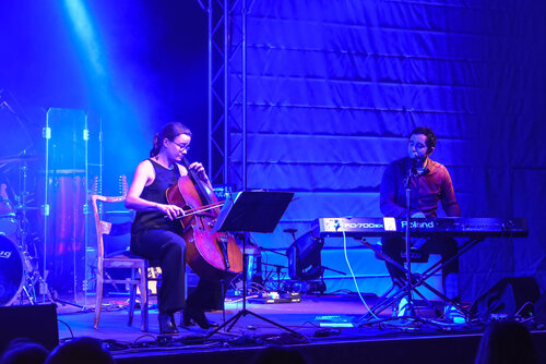 22:50. Nach der letzten Zugabe von Seeside treffen sich alle Musiker auf der Bühne. Gemeinsam und mit dem Publikum singen sie den Song "zusammen. bunt.", den Isabell Schmidt extra für das Event geschrieben hat. Eine Stunde später als geplant endet ein rundum gelungener Abend zusammen. bunt.