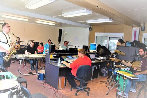 Gemeinsam werden derzeit musikalische Ideen entwickelt, ausprobiert, wieder umgestoßen, bis jeder aus der bunten Truppe seinen Part gefunden hat und die Töne richtig sitzen. Manchmal laut. Manchmal leise. Auf den Punkt. Zusammen bunt.