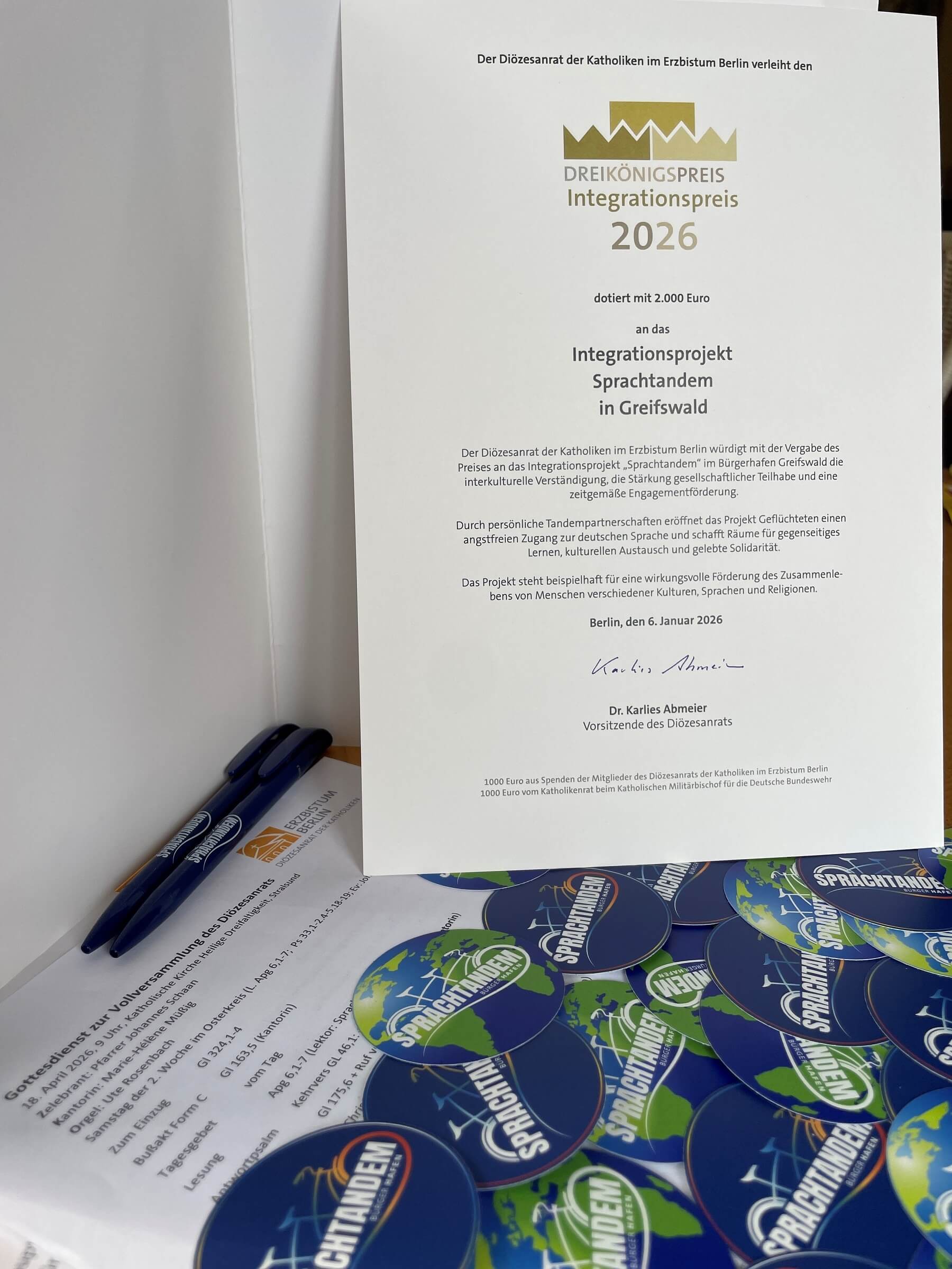 Diözesanrat der Katholiken im Erzbistum Berlin: Drei-Königs-Preis an Integrationsprojekt "Sprachtandem" verliehen.