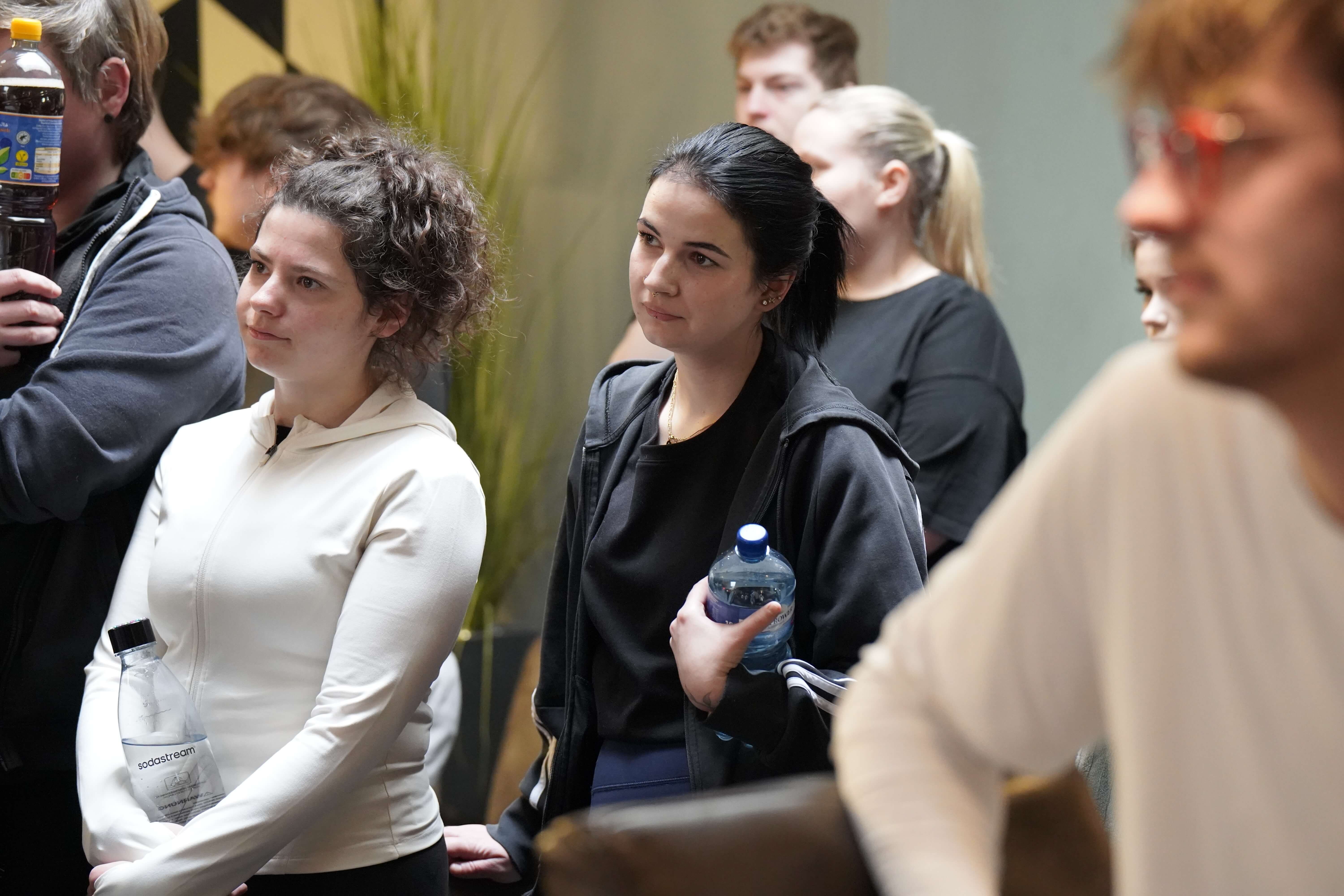 Die Zentralen Praxisanleiter Kathrin und Christoph nehmen die Auszubildenden vor der Tür des Fitnessstudios in Empfang. So richtig nach Move sieht hier draußen noch nichts aus. Doch dann öffnet sich die Tür. Eine lange Treppe führt nach oben und plötzlich wird ein wenig Aufregung, ein wenig Vorfreude, vielleicht auch ein wenig Unsicherheit spürbar, als die Gruppe die Schritte hinauf ins Studio geht. Trotz der frühen Uhrzeit sind bereits einige Sportler zum Trainieren da. Neugierige Blicke. Viele Fragezeichen. Was erwartet mich? Doch die Organisatoren holen die Auszubildenden mit einem kurzen Briefing ab. Ganz entspannt auf Augenhöhe und du und du. Dann geht es auch schon los.