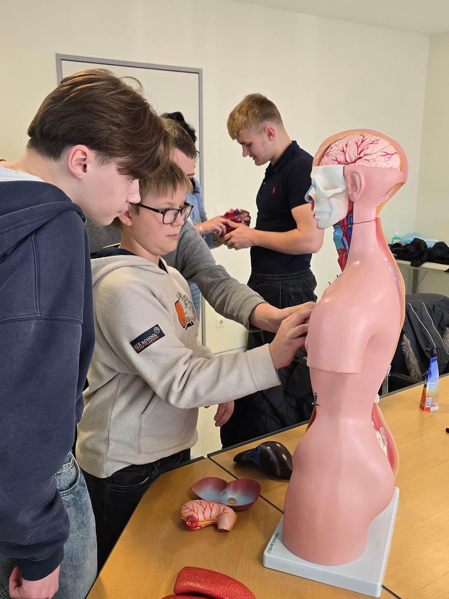 Die Schüler*innen lernten außerdem die Ausbildungsberufe „Pflegefachfrau*mann*person“, „Pflegefachassistent*in“ und „Kauffrau*mann im Gesundheitswesen“ kennen. Des Weiteren wurden Karrieremöglichkeiten durch spezielle Fachweiterbildungen erläutert, die bei den Jungen und Mädchen auf großes Interesse stießen. Anschließend nahmen alle an einem kleinen Gesundheitsquiz teil, bei dem es kleine Preise zu gewinnen gab.