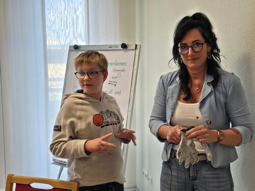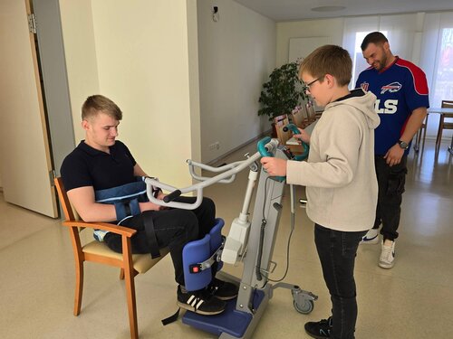 Jede*r durfte dieses Hilfsmittel testen – sowohl in der Bedienung, als auch aus der Perspektive einer*s Pflegebedürftigen. Schnell war die Erkenntnis da, dass körperliche Einschränkungen den Alltag wirklich erschweren und wie wichtig es ist, Unterstützung und Hilfestellung durch andere zu erhalten, die z.B. eine Hand reichen und Sicherheit vermitteln.